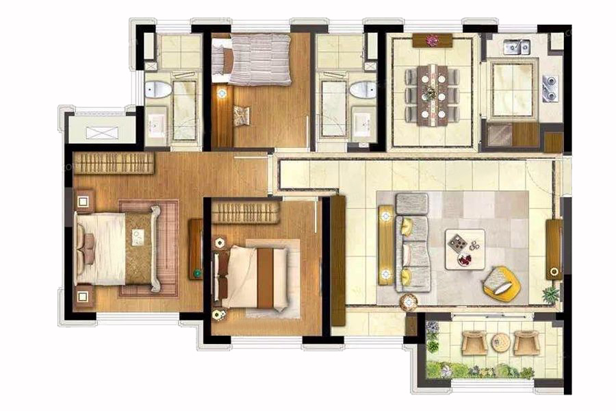 整体户型方正,活动区域开阔,居住舒适度高;整个户型空间布局合理,做到了干湿分离、动静分离,方便后期生活;各个功能区的尺寸比例规范,布局合理,能很好地满足日常功能需求,整体空间开阔,采光充足,居住舒适度好;