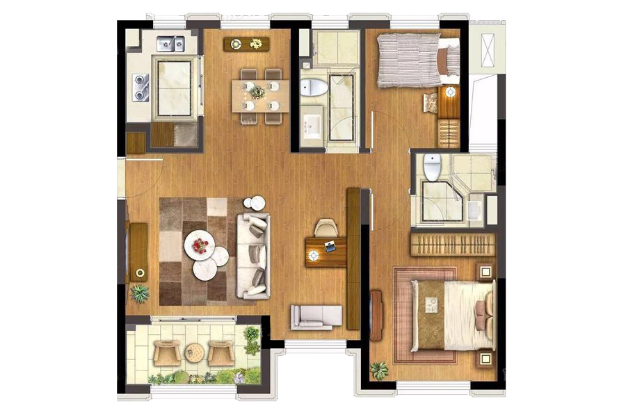 整体户型方正,活动区域开阔,居住舒适度高;南北不通透的户型,后期居住时常开门通风换气即可;整体空间布局合理,能够保证动静分离和居室通风,方便使用;