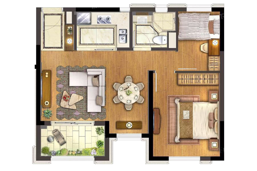 居室布局合理,通风良好,动静分离,兼顾到了卧室和卫生间的私密性;各个功能区的尺寸比例规范,布局合理,能很好地满足日常功能需求,整体空间开阔,采光充足,居住舒适度好;