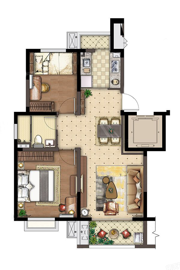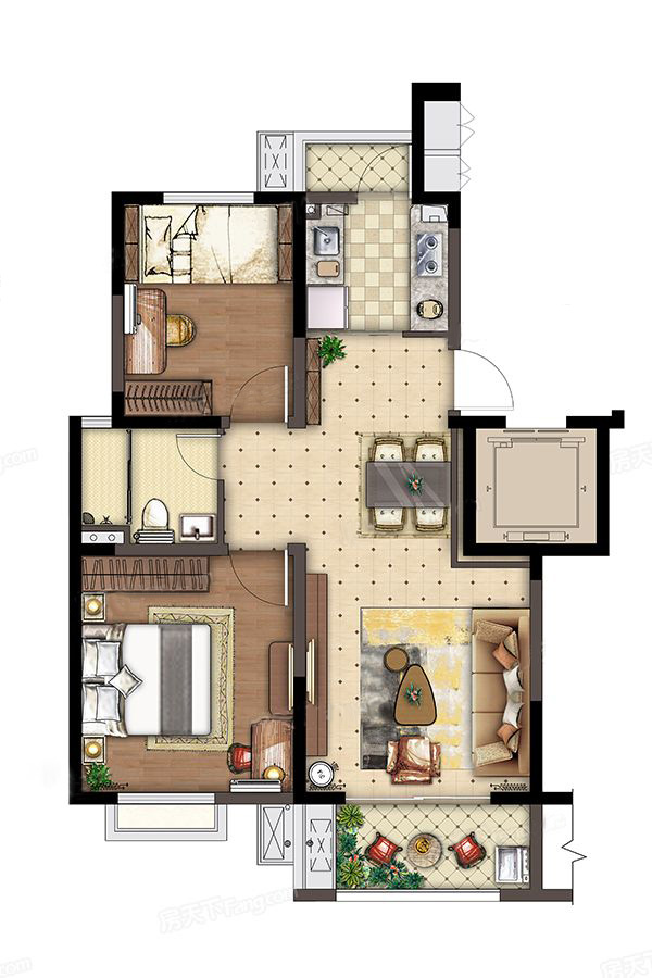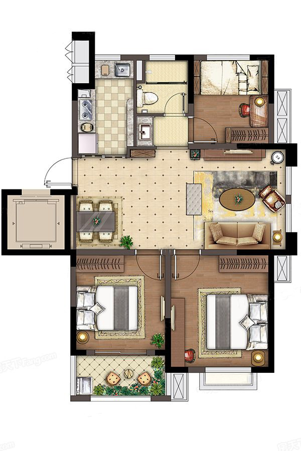 整体户型方正,活动区域开阔,居住舒适度高;整个空间全明通透,采光良好,同时利于居住空间通风;各个功能区的尺寸比例规范,布局合理,能很好地满足日常功能需求,整体空间开阔,采光充足,居住舒适度好。