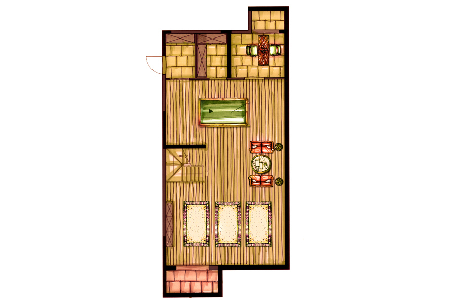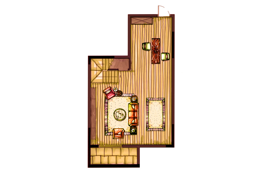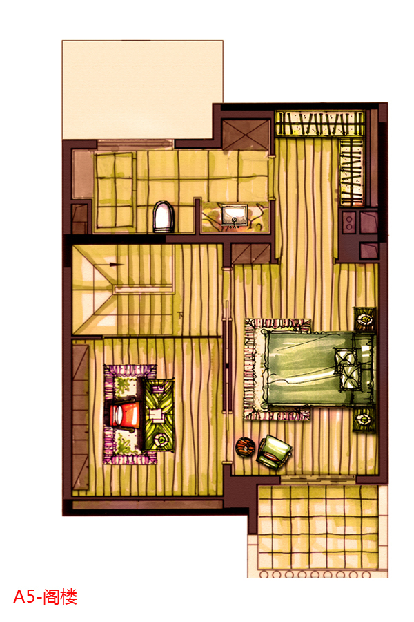阁楼各个空间户型方正,方便室内家具布置;全明通透户型,居住舒适度较高,整个空间采光充足,利于后期居住;整个户型空间布局合理,做到了干湿分离、动静分离,方便后期生活;