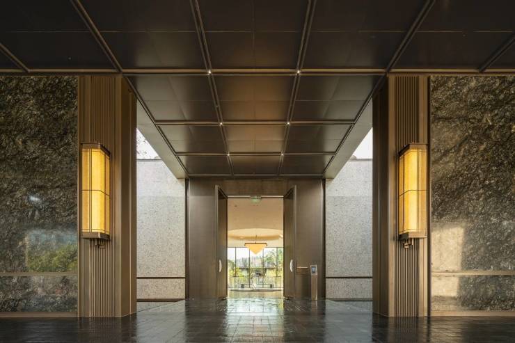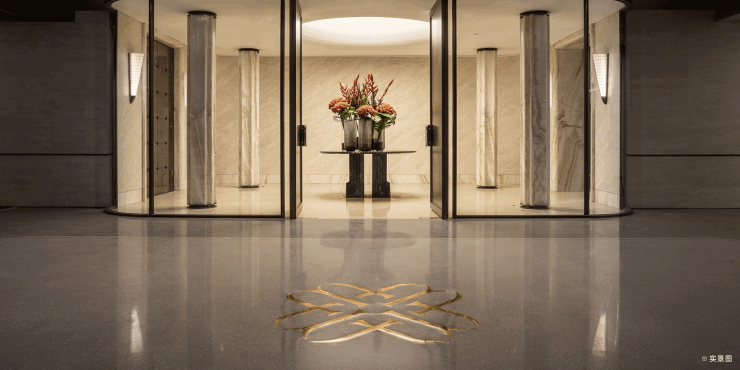 首先是兑现力满格的建筑立面,保利·海上印外立面对标上海经典Artdeco风格建筑与纽约、伦敦国际现代建筑。通过经典的立面美学和简约的现代设计,构筑国际化立面体系。同时选用米白色石材,香槟金铝板,大面积玻璃等进行美学搭配。以珠宝级“镶嵌”工艺打磨细节,达成极致颜值天花板。