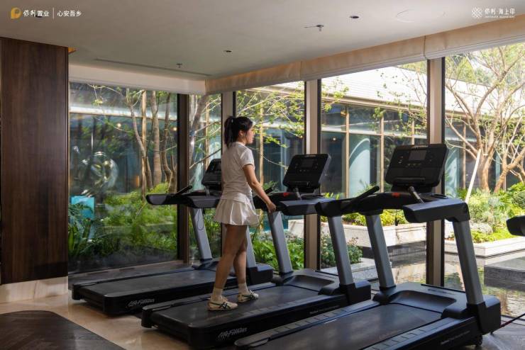云端健身舱的打造,突破传统健身房框架,以开放式布局构建流动空间场域。分别为器械力量区、有氧区、拉伸区、瑜伽房,配备市场占有率第一的美国力健(life fitness)全国顶级品牌专业设备。在运动时可以看到庭院的景观,更能呼吸到来自室外的新鲜空气。