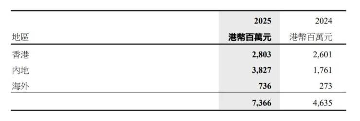 不过,因“以价换量”的促销策略,整体利润出现小幅回调。上半年销售收益录得17.68亿港元,同比微跌约3%。其中,香港地区销售收益显著收缩,仅实现约7400万港元,下跌逾九成;而内地及海外市场的收益则实现可观增长。