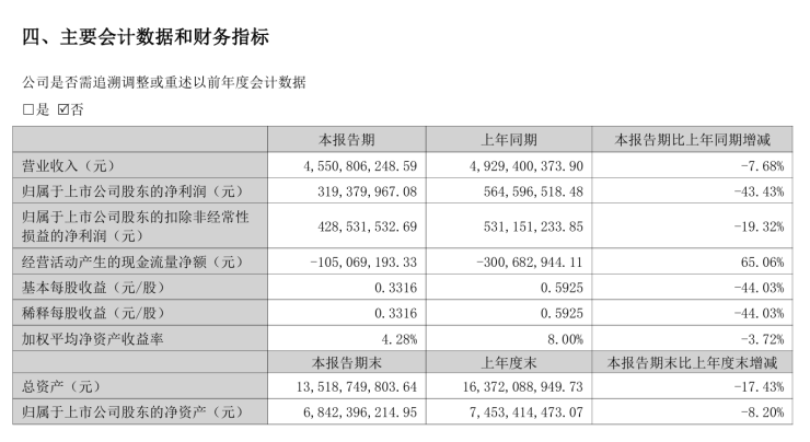 8月26日晚间,索菲亚(002572.SZ)公布2025年半年度报告,上半年公司实现营业收入45.51亿元,同比下降7.68%;归属于上市公司股东的净利润3.19亿元,同比下降43.43%;归属于上市公司股东的扣除非经常性损益的净利润4.29亿元,同比下降19.32%;基本每股收益0.3316元。