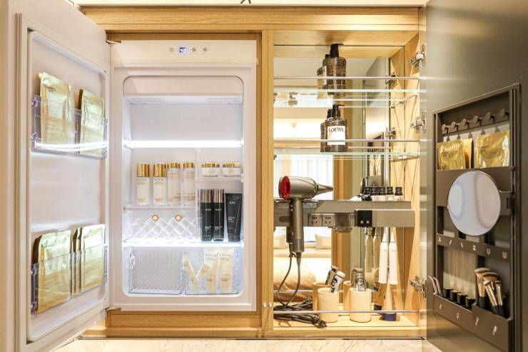 在配备美妆冰箱和美容浴霸的主卫里,每日的洗漱护理变成一场宠爱自己的仪式。