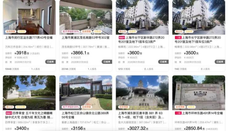 法拍房并非“上架即抢”。1月份开拍的总价过千万房源合计60套,最终仅20套成功易主,4套总价5000万及以上房源无人问津,市场呈现明显的“冷热不均”。