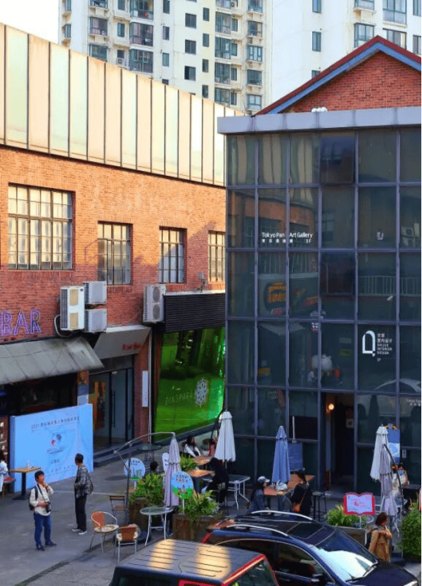 在莫干山路靠近苏州河处就是莫干山路50号“M50创意园”。在百米“高峰”俯视下,建筑错落、小巷曲折的厂房园区就像一座被背山面水的村落,入驻着众多中外一流画廊、知名艺术家工作室、知名设计企业,以及丰富的文创产业。早在2004年,美国《时代》周刊就以“上海时尚地标”为题报道了M50,将它与东方明珠、金茂大厦并列为“推荐参观之地”,这也让莫干山路成为了老外游上海的初代“网红打卡地”。