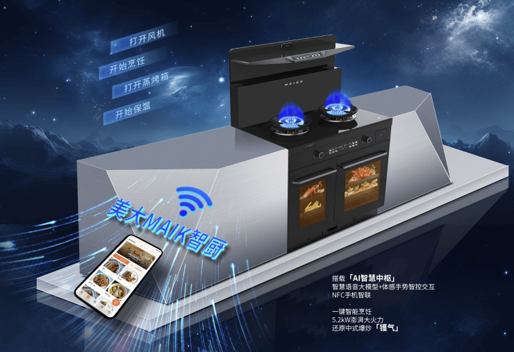 美大全场景智慧厨房的功能最大化不仅体现在硬件集成上,更表现在系统性的智能协同中。当用户开始烹饪时,美大集成灶自动启动,这种设备间的智能联动,消除了传统厨房中设备各自为政的割裂感。