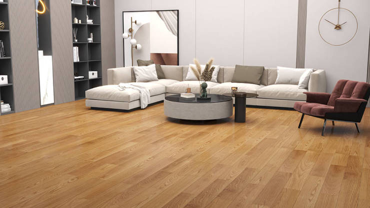 高端装修选实木地板常遇痛点:优质北美红橡难寻,市面多以次充好;名贵木种品质无溯源,担心掺假;常规尺寸适配大户型显局促,脚感欠佳;且大尺寸实木地板易受温湿度影响变形,稳定性不足。