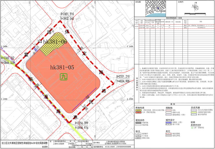 近日,虹口区北外滩地区控制性详细规划hk381街坊局部调整方案获批,其中明确街坊用地性质由原规划的九年一贯制学校用地(Rs5)、商业服务业用地(C2)、社区养老福利设施用地(Rc6)调整为规划的九年一贯制学校用地(Rs5),并保留现状的住宅商办混合用地(Rr2C8)。