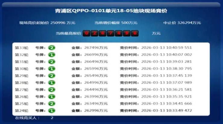 绿城以26.75亿元竞得青浦徐泾地块,溢价率6.6%,成交楼板价31972元/㎡;