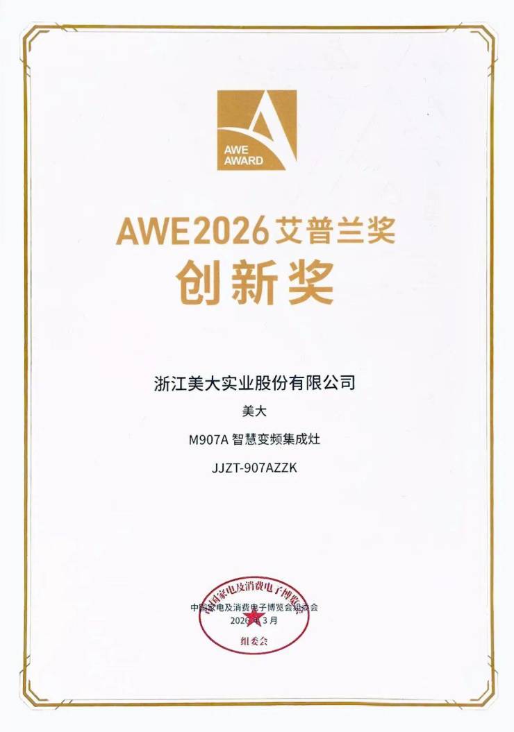 3月12日,2026年中国家电及消费电子博览会(AWE)现场传来重磅喜讯——浙江美大旗下产品M907A集成灶凭借卓越的创新设计与技术突破,一举摘得艾普兰创新奖,为品牌再添高光时刻!