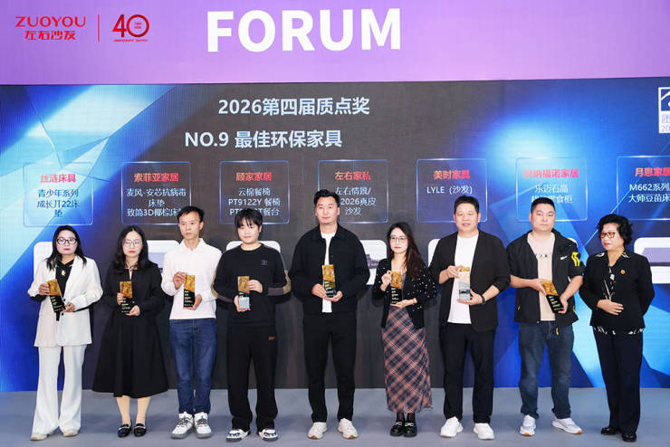 双项荣誉加身,既是行业与市场对左右沙发40载坚守品质、践行绿色发展的高度认可,更彰显了其在品质把控、标准制定、体系完善方面的行业引领力,也是对左右沙发“打造绿色家居,幸福亿万家庭”使命的有力见证。