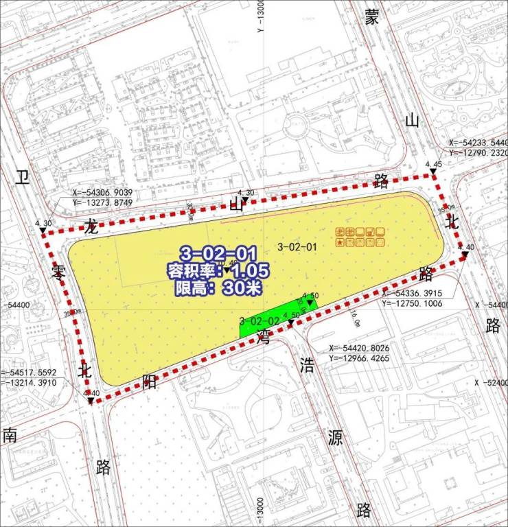 3-02-01地块用地面积约6万平方米,容积率1.05,限高30米。用地性质方面,一类住宅组团用地(Rr1)不超过50%,二类(Rr2)不低于10%,三类(Rr3)不超过40%,整体呈现低密多元的住宅结构。