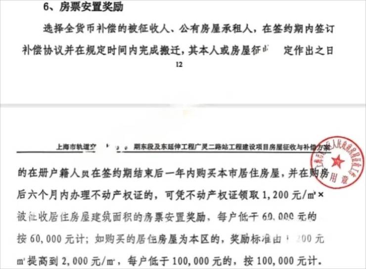 若选择购买虹口区内的住房,奖励标准则提高至每平方米2000元,保底10万元。奖励对象限定为被补偿人或户籍在册人员。