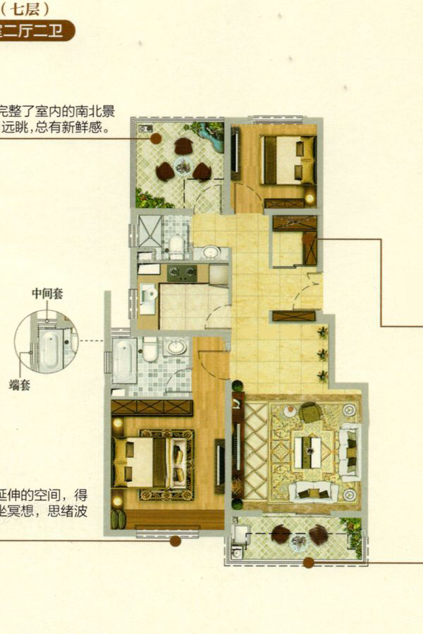 秋月朗庭尚东区2室2厅1厨2卫 总价待定