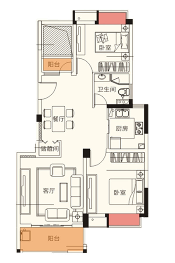 各个空间户型方正,后期空间利用率高;全明户型,各部分空间均有窗,可保证整体空间采光和通风,居住舒适度好;