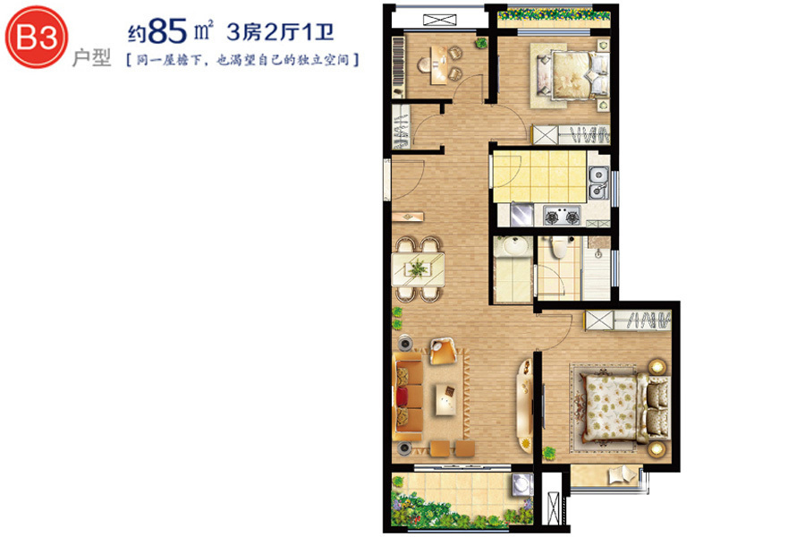 整体户型方正,活动区域开阔,居住舒适度高;全明户型,各部分空间均有窗,可保证整体空间采光和通风,居住舒适度好;居室布局合理,通风良好,动静分离,兼顾到了卧室和卫生间的私密性;客厅、卧室、卫生间和厨房等主要功能间的尺寸以及比例适中,有利于采光和通风,居住起来舒适、方便;
